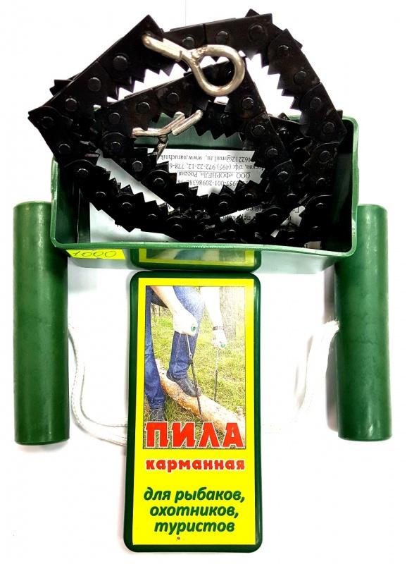 Пила карманная ручная идеальна для выживания в экстремальных условиях. Подходит для туристов, рыбаков, охотников, дачников и автомобилистов. Пила предназначена для распила древесины хвойных и лиственных пород влажностью 12-50%. Пила имеет покрытие защищающее от ржавчины. Можно пользоваться как вдвоём, так и одному человеку. Твёрдость стали HRC 40....45. Общая длина 100 см., режущая поверхность 71 см. Внешние габарита футляра - 48х55х120 мм. В процессе эксплуатации допускается пилу подклёпывать и затачивать. ТУ 3957-001-20986380-98.
