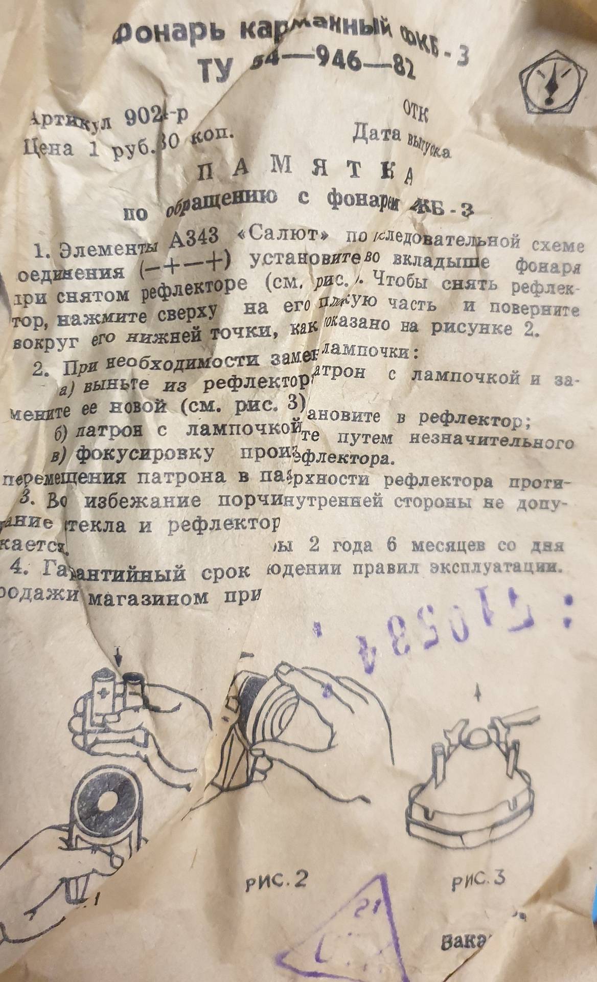 Фонарь карманный ФКБ 3 СССР