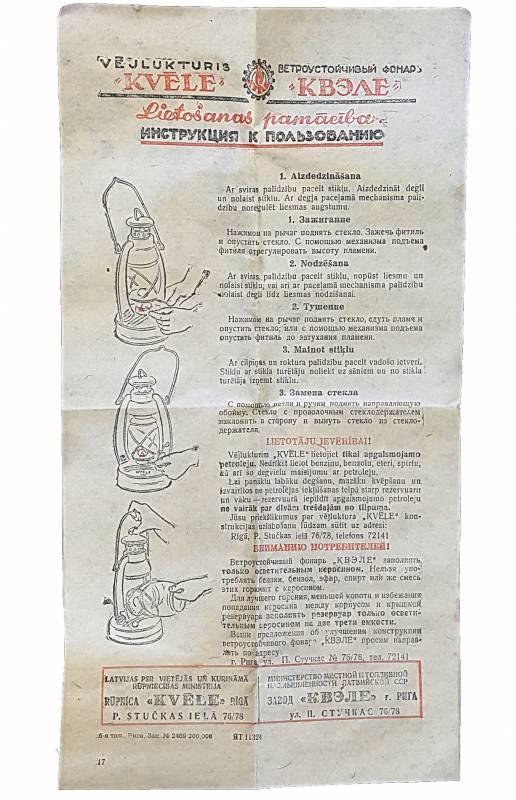 Керосиновый фонарь KVЁLE г. Рига, пятидесятые года, Латвийская ССР.
