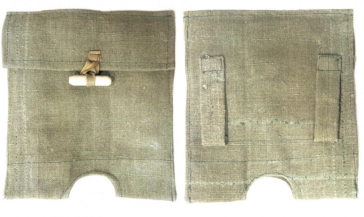 Чехол с застёжкой на деревянную пуговицу изготовлен для складной лопатки. Чехол современного Российского производства, чехол изготовлен в качестве копии чехла образца 1930 - 1940 гг., для пехотной лопатки. Чехол изготовлен из старого качественного брезента произведённого во времена существования СССР. Чехол по своим размерам 20 см. х 23 см.