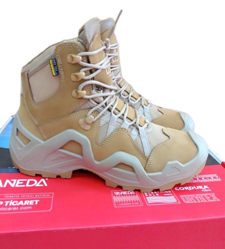 Ботинки берцы тактические оригинальные производство Турция VANEDA. Модель разработана для использования в тяжелых боевых условиях. Штурмовой ботинок, подходят для использования в городской застройке и на пересечённой местности. Высокопрочный амортизатор двойная мембрана, дышат, влагонепроницаемые. Верх- комбинированный, выполнен из прочной нубуковой кожи. Дополнительно ботинки выполнены из прочной ткани Cordura. Подошва двухслойная I-RUBBER.